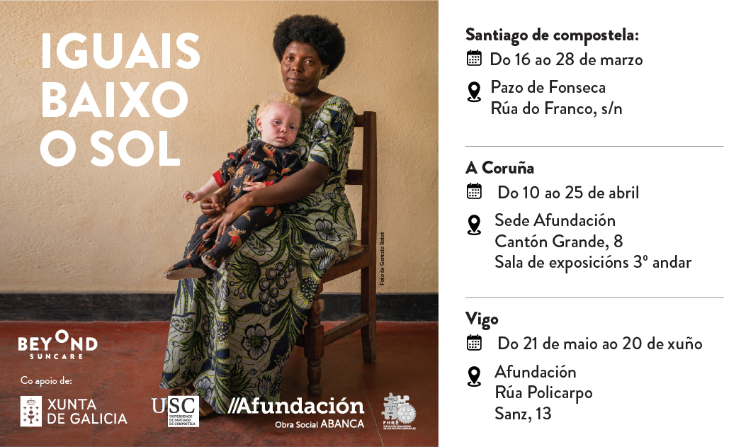 A mostra ofrece un percorrido visual pola dignidade e a resiliencia das persoas con albinismo en diferentes lugares de África subsahariana. Poderá visitarse do 16 ao 28 de marzo.