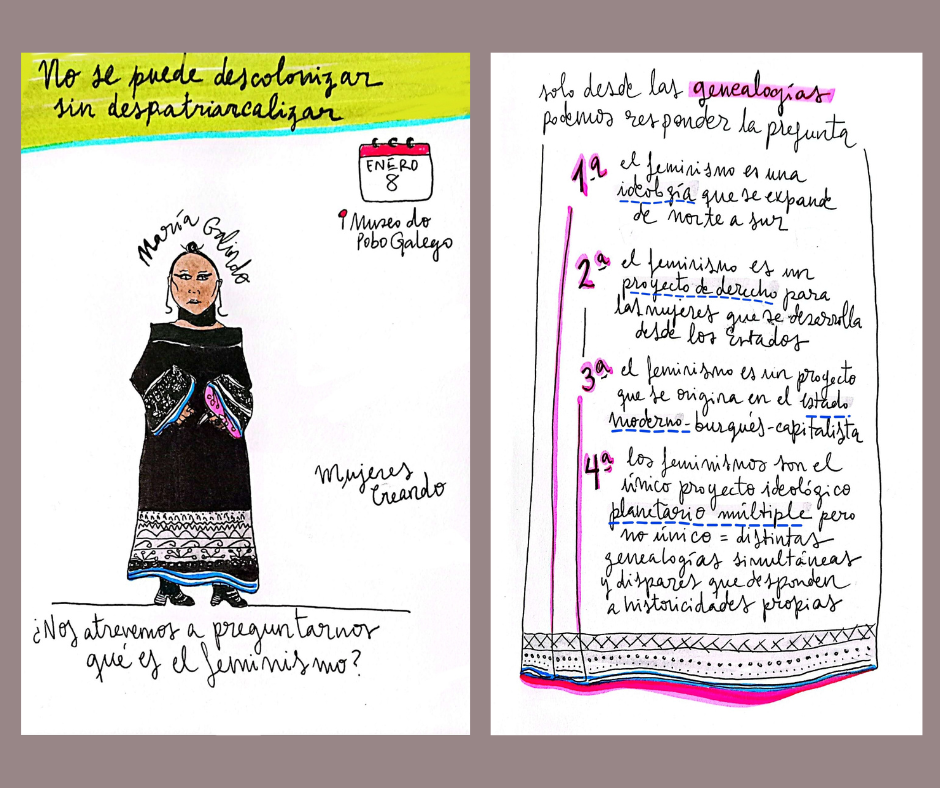 Neste sentido, María Galindo salientou a importancia de traballar desde a diversidade xenealóxica fronte á imposición dunha xenealoxía única, que aspira a construír un pensamento único e reproduce lóxicas claramente colonialistas.